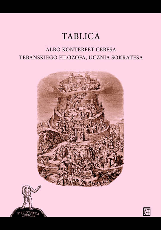 Obraz Cebesa to niezwykle popularny w epoce renesansu, ale również w siedemnastym i osiemnastym stuleciu, późnoantyczny dialog wykorzystywany powszechnie w szkołach jako tekst, który z jednej strony służył nauce greki, z drugiej prezentował w przystępnej i łatwo zapadającej w pamięć formie główne zasady starożytnej filozofii moralnej. Znajdujemy w nim elementy nauk przedstawicieli różnych szkół filozoficznych (przede wszystkim jednak stoików). Oprócz wydań tekstu greckiego pojawiały się niezliczone edycje kilku wersji łacińskich oraz tłumaczenia na wiele języków europejskich, a wśród nich przedrukowana tutaj polska wierszowana parafraza krakowskiego typografa Macieja Wirzbięty.